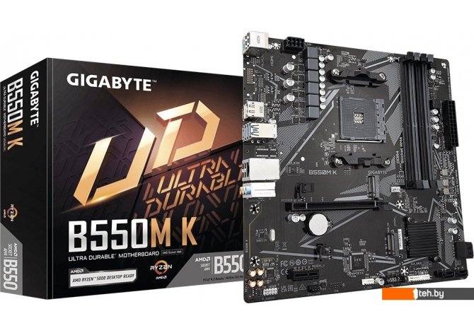 Фотографии, описание и технические характеристики модели материнской платы для компьютера Gigabyte B550M K (rev. 1.0) взяты из открытых источников, официального сайта производителя или представительства Gigabyte в Республике Беларусь.