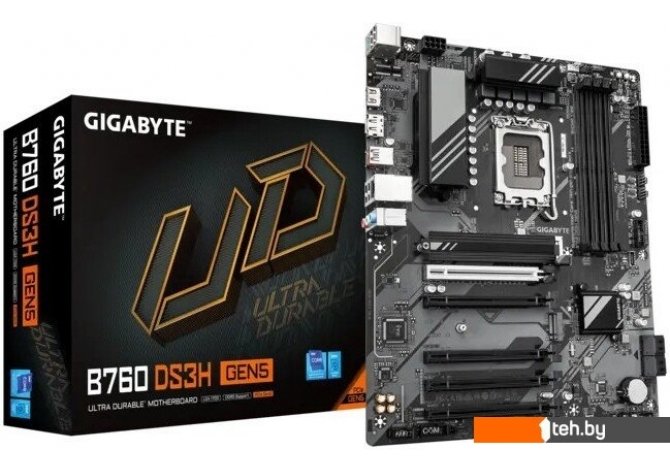 Фотографии, описание и технические характеристики модели материнской платы для компьютера Gigabyte B760 DS3H Gen5 взяты из открытых источников, официального сайта производителя или представительства Gigabyte в Республике Беларусь.
