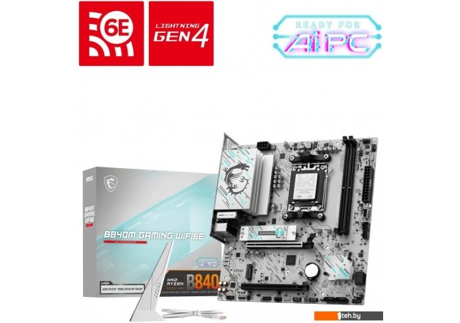 Фотографии, описание и технические характеристики модели материнской платы для компьютера MSI B840M Gaming WiFi6E взяты из открытых источников, официального сайта производителя или представительства MSI в Республике Беларусь.