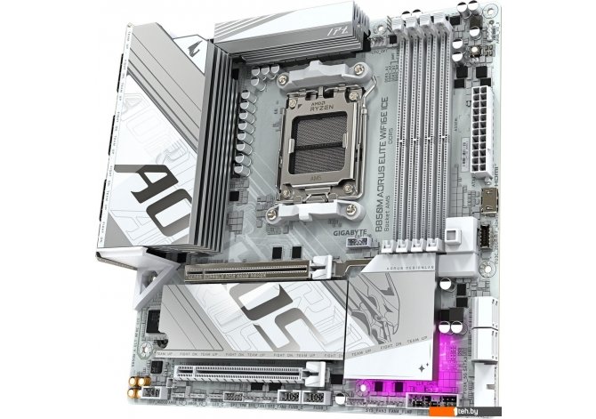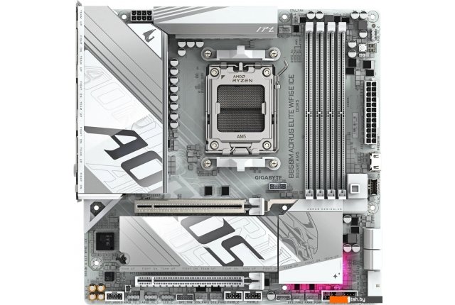 Фотографии, описание и технические характеристики модели материнской платы для компьютера Gigabyte B850M Aorus Elite WiFi6E Ice (rev. 1.1) взяты из открытых источников, официального сайта производителя или представительства Gigabyte в Республике Беларусь.