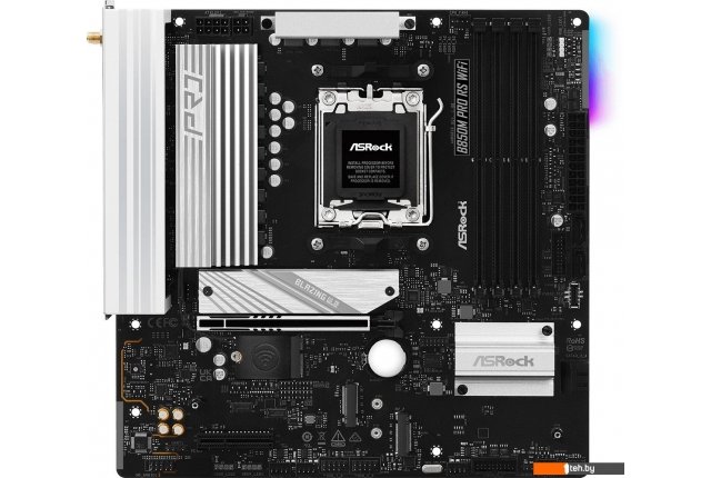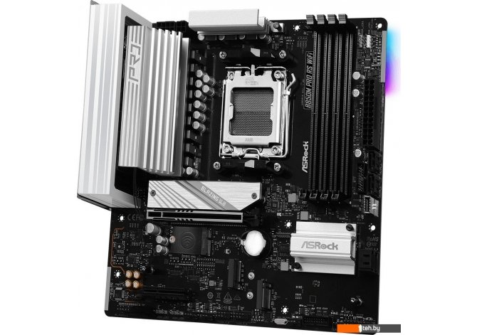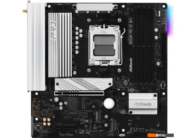 Фотографии, описание и технические характеристики модели материнской платы для компьютера ASRock B850M Pro RS WiFi взяты из открытых источников, официального сайта производителя или представительства ASRock в Республике Беларусь.