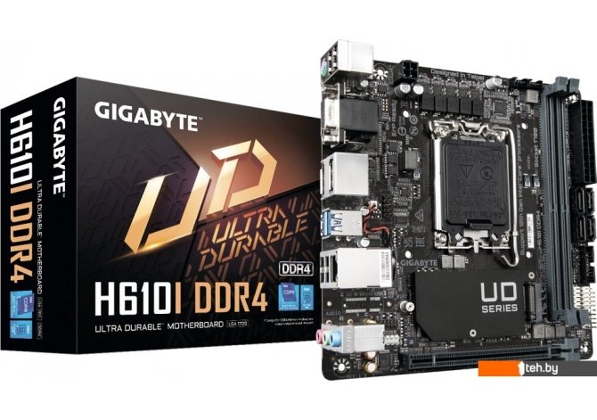 Фотографии, описание и технические характеристики модели материнской платы для компьютера Gigabyte H610I DDR4 (rev. 1.0) взяты из открытых источников, официального сайта производителя или представительства Gigabyte в Республике Беларусь.