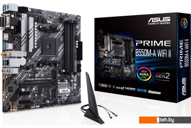 Фотографии, описание и технические характеристики модели материнской платы для компьютера ASUS Prime B550M-A WIFI II взяты из открытых источников, официального сайта производителя или представительства ASUS в Республике Беларусь.