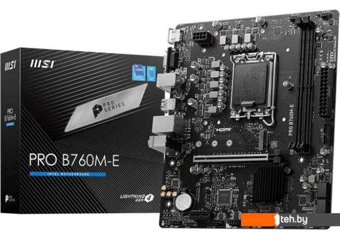 Фотографии, описание и технические характеристики модели материнской платы для компьютера MSI Pro B760M-E взяты из открытых источников, официального сайта производителя или представительства MSI в Республике Беларусь.