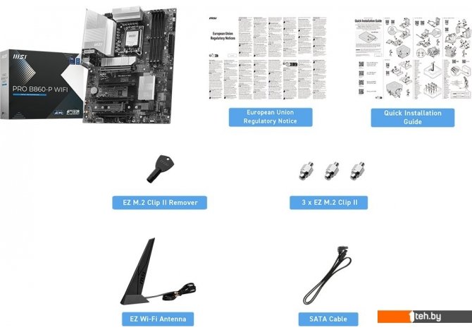 | Комплектация | - кабель SATA - Wi-Fi антенна - 3 винта EZ M.2 Clip II - EZ M.2 Clip II экстрактор - документация |