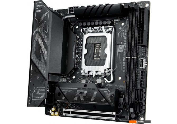 Фотографии, описание и технические характеристики модели материнской платы для компьютера ASUS ROG Strix B860-I Gaming WiFi взяты из открытых источников, официального сайта производителя или представительства ASUS в Республике Беларусь.