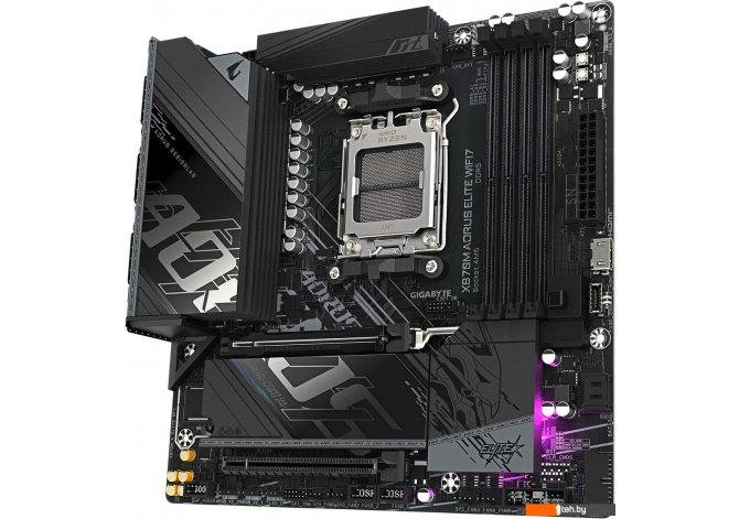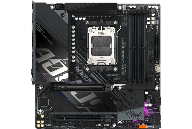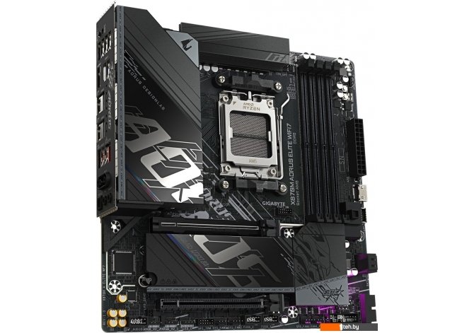 Фотографии, описание и технические характеристики модели материнской платы для компьютера Gigabyte X870M Aorus Elite WiFi7 взяты из открытых источников, официального сайта производителя или представительства Gigabyte в Республике Беларусь.