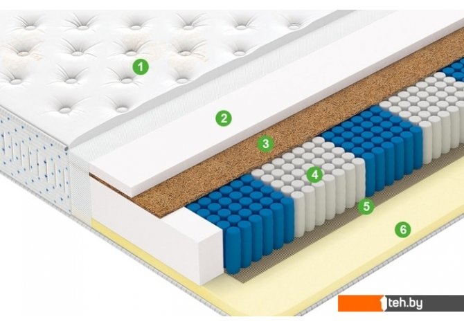 | Информация | 1. Чехол из эксклюзивной ткани Premium Knitwear имеет роскошный внешний вид благодаря плотному трикотажному плетению. Обладает свойством отличной терморегуляции и обеспечивает превосходные ощущения в любое время года. 2. Эластичный пористый материал нового поколения, образованный большим количеством мелких однородных ячеек. Одновременно мягкий и упругий, он отлично вентилируется и быстро восстанавливает форму. Кокосовая койра 3. Натуральный материал из спрессованных волокон кокосового ореха, пропитанных латексом. Используется для придания матрасу жесткости. Multipocket R2200 7-Zone 4. Инновационный блок стальных независимых пружин с семью поперечными зонами жесткости. Оптимальная ширина и сбалансированная жесткость центральной зоны гарантирует комфортный отдых человеку любого роста и телосложения. Высокая плотность размещения пружин позволяет точно реагировать на нагрузку, обеспечивая оптимальный ортопедический эффект. Мебельная сетка 5. Защитная прослойка, отделяющая пружинный блок от мягких настилочных слоев. Предотвращает преждевременный износ компонентов. MemoryFoam 6. Инновационный материал с памятью формы, разработанный для нужд аэрокосмической отрасли. Обладает одновременно вязкостью и эластичностью, что дарит спящему ощущение невесомости. |