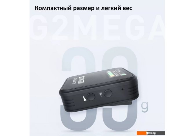 | Информация | ??Текст описания переведен при помощи искусственного интеллекта. - SYNCO G2 Mega — это беспроводной микрофон для съемки. Он обладает теми же функциями, что и SYNCO G2 Max, но поставляется с зарядным боксом, который обеспечивает 24 часа записи в общей сложности. - Передатчик оснащен 8 ГБ встроенной памяти для записи звука без потерь. Алгоритм Syncoder™ 4.0 позволяет передавать аудио стабильно на расстоянии до 656 футов/200 метров. Функция подавления шума и 6-уровневый контроль усиления обеспечивают гибкие настройки звука. Все это позволяет G2 Mega идеально работать со смартфонами, камерами, компьютерами, колонками и т.д. - Каждый передатчик G2 Mega имеет 8 ГБ внутренней памяти для записи. С 24-битной плавающей записью, любой записанный звук, который был слишком громким или слишком тихим, может быть восстановлен на этапе пост-продакшн. Это обеспечивает резервное копирование аудио, чтобы избежать беспокойства о потере сигнала. Или вы можете записывать звук напрямую с помощью микрофона и передавать аудиофайл через порт Type-C на TX. - SYNCO G2 Mega может захватывать звуки до 24 часов в общей сложности. Его встроенный перезаряжаемый литий-ионный аккумулятор позволяет работать непрерывно в течение 8 часов. Поставляемый зарядный бокс обеспечивает две дополнительные зарядки, тем самым гарантируя 24 часа записи в общей сложности. Это делает G2 Mega идеальным вариантом для различных приложений, таких как прямые трансляции, телевизионные шоу, мобильные интервью, влоги и многое другое. - |