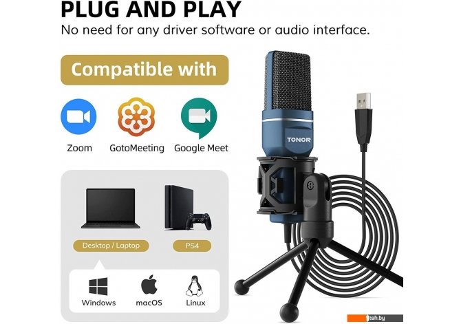 Фотографии, описание и технические характеристики модели микрофона Tonor TC-777 взяты из открытых источников, официального сайта производителя или представительства Tonor в Республике Беларусь.