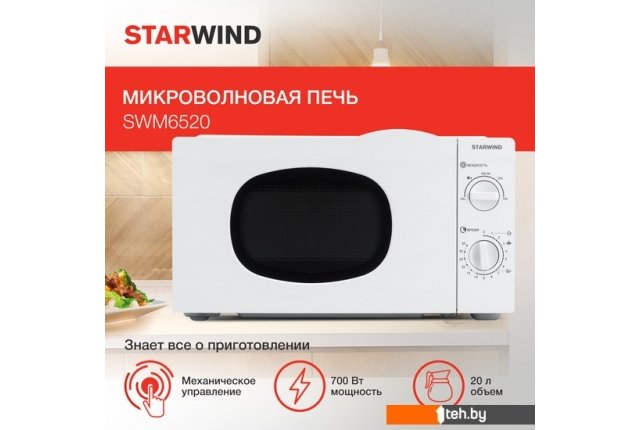 Фотографии, описание и технические характеристики модели микроволновой печи StarWind SWM6520 взяты из открытых источников, официального сайта производителя или представительства StarWind в Республике Беларусь.