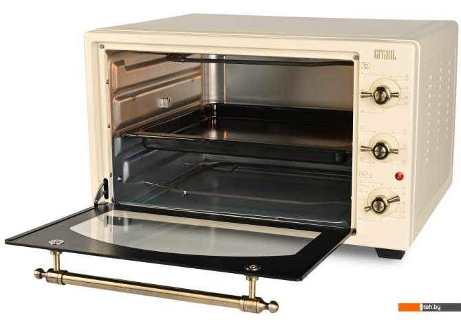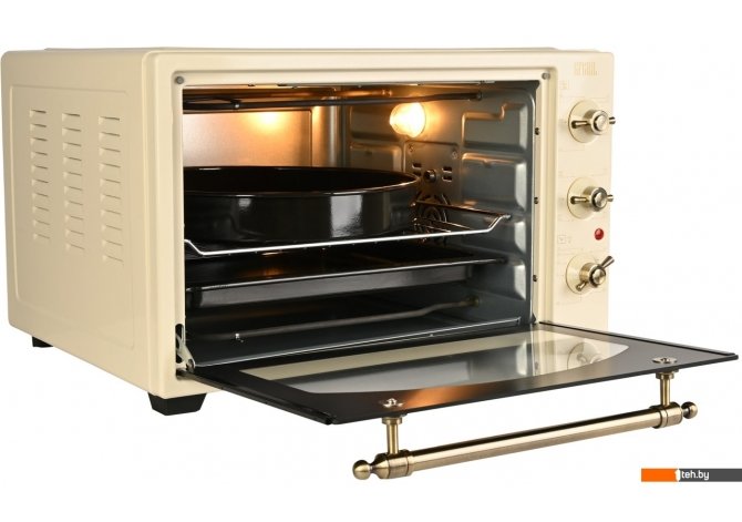 | Информация | - Электрическая многофункциональная мини печь c вертелом и конвекцией GFGRIL GFO-42 в бежевом цвете подойдет всем, кто не хочет тратить много времени на приготовление пищи, но при этом хочет питаться вкусно и полезно. Настольная мини печь духовка выполнена в ретро стиле «Рустик», что идеально подчеркнет красоту и уют Вашей кухни. - Благодаря вместительной внутренней камере объемом 42 литра мини печь электрическая GFO-42 может стать полноценной альтернативой духовке и позволит разместить объемные блюда, а также готовить на нескольких уровнях одновременно. - Вы сможете приготовить различные блюда для Вашей семьи и для Ваших гостей, используя круглый или прямоугольный противень, идущие в комплекте. Два нагревательных элемента общей мощностью 2000 Вт обеспечивают быстрый нагрев. - Дверца из закаленного стекла исключит вероятность получения ожогов при прикосновении к ней, лучше сохраняет температуру внутри печи электрической и позволяет наблюдать за процессом приготовления, не открывая дверцу. - Духовая электропечь GFGRIL GFO-42 имеет несколько режимов приготовления: - Режим «Конвекция + Верхний и нижний нагрев». Встроенный вентилятор перемешивает горячий воздух, обеспечивая равномерное прогревание всего объема, что позволяет готовить пищу сразу на нескольких противнях одновременно. - Режим «Верхний нагрев + конвекция». Работают верхний нагревательный элемент и вентилятор. Используется для приготовления блюд с хрустящей корочкой, например, куска мяса. - Режим «Верхний и Нижний нагрев». Работают два нагревательных элемента. Используется для равномерного выпекания и жарки на одном уровне. - Режим «Верхний и нижний нагрев + конвекция и вертел». Сочетание вертела и конвекционного вентилятора помогут при приготовлении объёмных блюд и получения хрустящей корочки. - Вертел + верхний нагрев» - используется для запекания различных сортов мяса и птицы. - Вы можете с легкостью выбрать один из 5 режимов приготовления, температуру приготовления от 80 до 250 С и время приготовления от 10 до 90 минут при помощи механических поворотных регуляторов, а встроенная подсветка позволит наблюдать за процессом, не открывая часто дверцу шкафа, сохраняя температуру внутри. - По истечении установленного времени таймер оповестит Вас об окончании процесса приготовления звуковым сигналом. Индикатор включения загорится после включения печи и будет гореть на протяжении всего времени приготовления. - Электрическая печь с конвекцией поставляется в комплекте с круглым (диаметр 32,8 см) и прямоугольным (39,3*342*3 см) противнями, поддоном для крошек, металлической решеткой (39,4*34 см), вертелом, держателем для вертела, а также держателем с зажимом для безопасного и лёгкого извлечения противня/решетки из печи. - Печь настольная GFO-42 имеет размеры (Ш*Г*В): 52*45,4*32,2 см и вес 9,1 кг, что позволят Вам разместить ее в удобном для приготовления месте, а также взять с собой на дачу. - Мини печь электрическая настольная в деревенском стиле GFO-42 - это прибор для кухни, который сочетает в себе функции духового шкафа и печи, обеспечивая возможность запекания, зажаривания и других вариантов приготовления блюд. - Мини духовка электрическая является неотъемлемой частью техники для кухни и может использоваться как дополнение к плитам и варочным панелям. |