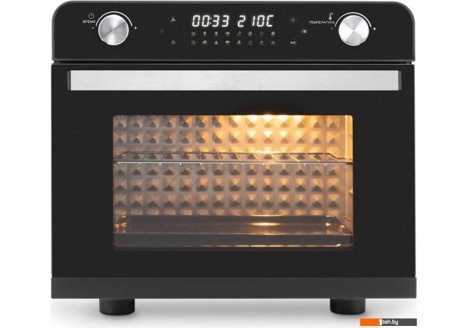 | Информация | - Мини-печь Hyundai MIO-HY087 с внутренним объемом 36 л и 16 автоматическими программами для запекания блюд. - Таймер обратного отсчета до 360 минут и подсветка для контроля готовности блюда. - Металлический корпус, сенсорные кнопки, дисплей с индикацией параметров. - В комплекте: вертел, противень, поддон, решетка, корзина для фритюра, держатели противня и решетки. |