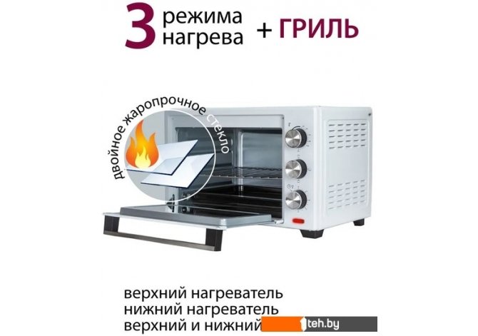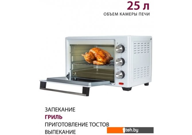| Информация | ? Объем камеры печи: 25 литров ? Двойное жаропрочное стекло ? Тип управления: механический ?? Максимальная потребляемая мощность: 1600 Вт - необходимо соблюдать указанную мощность |