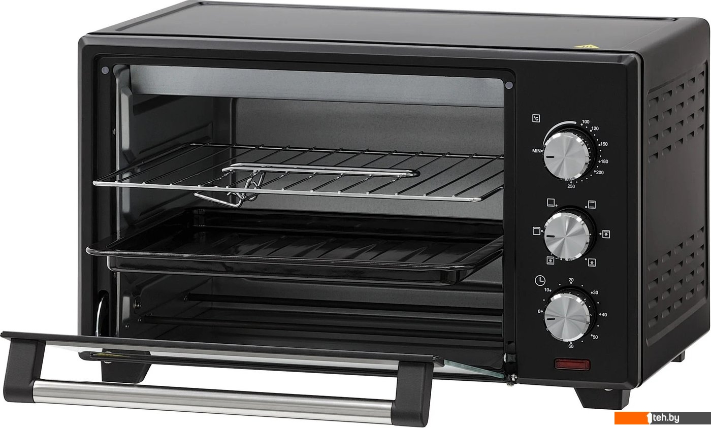 Информация | - Электрическая мини-печь, которая станет отличным помощником на вашей кухне. Объем составляет 28 литров, что позволяет готовить разнообразные блюда. - Корпус выполнен из нержавеющей стали, а антипригарное покрытие камеры обеспечивает легкость в уходе. Мощность устройства достигает 1600 Вт, что гарантирует быструю и эффективную работу. - Механическое управление позволяет плавно регулировать температуру в диапазоне от 100 до 250°C. Четыре нагревательных элемента из нержавеющей стали обеспечивают равномерное прогревание. - Таймер с возможностью установки от 0 до 60 минут и звуковым сигналом окончания работы делает процесс приготовления еще удобнее. - Мини-печь предлагает шесть режимов работы: верхний нагрев, нижний нагрев, двойной нагрев, а также режимы с конвекцией. Внутренняя подсветка и индикатор работы добавляют удобства в использовании. - Стеклянная дверца позволяет следить за процессом приготовления, а в комплект входят хромированная решетка, эмалированный противень и хромированная ручка. - Прорезиненные ножки обеспечивают устойчивость, а ненагревающаяся стальная ручка дверцы гарантирует безопасность при использовании. Цвет — черный, что придаёт устройству стильный вид. |