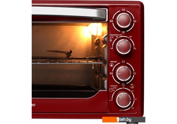 | Информация | ? Электрическая мини-печь NORDFROST RC 350 R объемом 35 литров с 6 режимами нагрева станет незаменимым прибором на вашей кухне. Корпус модели выполнен в стильном бордовом цвете. ? Настольная духовка предназначена для выпекания хлеба, пирогов, тортов, пирожков, а также для приготовления мясных, рыбных и овощных блюд. ? Высокая мощность модели 1600 Вт и функция конвекции обеспечат быстрое и равномерное приготовление продуктов в больших порциях. ? Настольная духовка имеет 6 режимов работы. Мощные нагревательные элементы расположены в верхней и нижней частях прибора. ? С помощью режима «Гриль» печь позволяет готовить мясо большим куском, целую курицу или рыбу с хрустящей золотистой корочкой. Вертел для гриля обеспечит равномерную прожарку со всех сторон. ? Управление режимами – механическое, осуществляется с помощью поворотных регуляторов. Диапазон температуры нагрева печи от 100 до 250 °С. ? За счет встроенной подсветки удобно наблюдать за процессом приготовления через стеклянную прозрачную дверцу мини-печи, не открывая ее. ? Для контроля времени приготовления блюда предусмотрен встроенный таймер с автоматическим отключением. С помощью него можно запрограммировать точное время приготовления до 120 минут. По истечении времени громкий звуковой сигнал проинформирует пользователя о готовности блюда. ? Универсальный противень и решетку можно использовать для приготовления одновременно на разных уровнях духового шкафа. В комплекте идет ухват для противня и решетки, чтобы быстро и безопасно извлечь горячие блюда из духовки. Стационарные направляющие в мини-печи представляют собой выемки на внутренней поверхности модели, на которые как раз опирается противень или решетка. Внутреннее покрытие духовки выполнено из оцинкованной стали. ? Поддон для крошек позволяет сэкономить время на очистку духового шкафа и служит дополнительной защитой от возгорания остатков пищи, попадающих на нагревательный элемент. ? Высокие ножки из термоустойчивого пластика не оставляют царапин на столе, препятствуют скольжению по поверхности и способствуют уменьшению воздействия горячих температур на столешницу. |