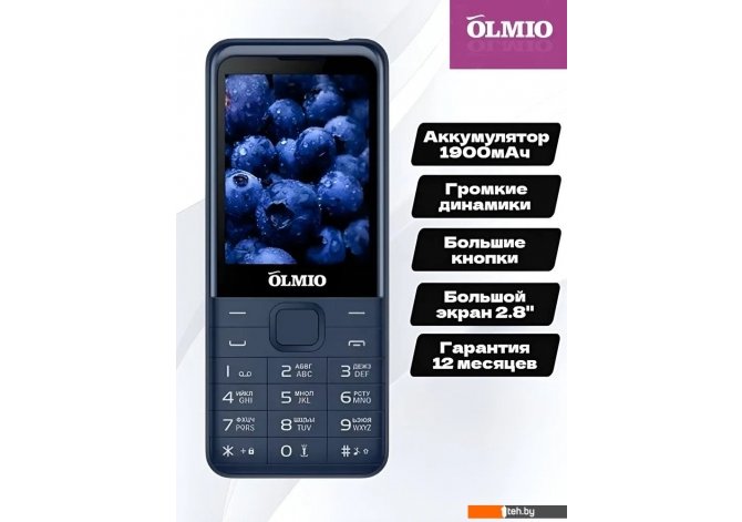 Фотографии, описание и технические характеристики модели мобильного телефона Olmio E29 (синий) взяты из открытых источников, официального сайта производителя или представительства Olmio в Республике Беларусь.