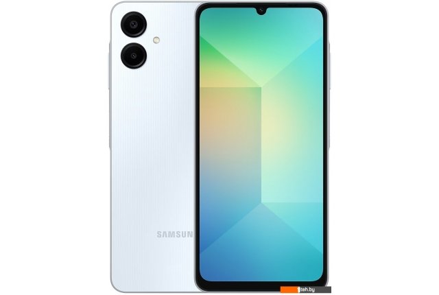Фотографии, описание и технические характеристики модели мобильного телефона Samsung Galaxy A06 SM-A065F 4GB/64GB (голубой) взяты из открытых источников, официального сайта производителя или представительства Samsung в Республике Беларусь.