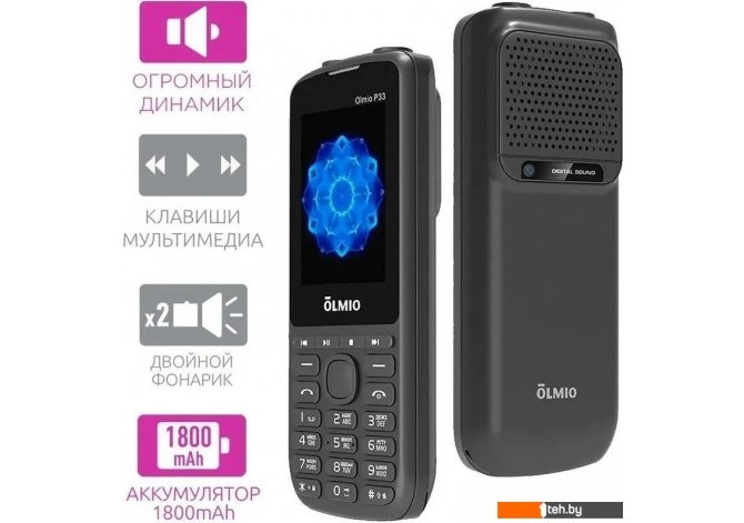 Фотографии, описание и технические характеристики модели мобильного телефона Olmio P33 (черный) взяты из открытых источников, официального сайта производителя или представительства Olmio в Республике Беларусь.