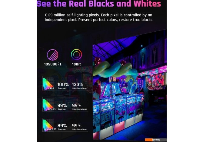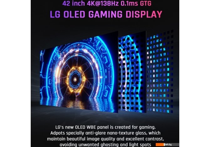 Информация | ? Новая игровая панель LG OLED предлагает 42-дюймовый монитор с 4K OLED-дисплеем, безрамочным экраном и защитой от ""выжигания"" экрана. ? Увеличьте свою игру с высокой частотой обновления 138 Гц, временем отклика 0,1 мс (GTG) и поддержкой технологий FreeSync Premium и G-Sync. Монитор также обеспечивает защиту глаз и имеет металлическую подставку с RGB-подсветкой. ? Тип-С PD 90W обратная зарядка и разнообразные порты, включая HDMI2.1?2, DP1.4?1, USB3.0?3, делают монитор G42P5 идеальным для игр, дизайна и развлечений. ? Увидьте настоящие черные и белые цвета благодаря 10-битному дисплею, 110% цветовому охвату DCI-P3 / 111% sRGB и высокой точности цветопередачи. |