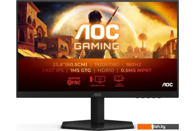 | Информация | - AOC 24G42E — игровой монитор с диагональю 23.8 дюйма и разрешением 1920x1080, ориентированный на поклонников динамичных игр, требующих высокой скорости отклика и плавности изображения. Благодаря технологии Fast IPS и времени отклика 1 мс (GtG), а также 0.5 мс (MPRT), он минимизирует размытие и обеспечивает четкость даже в самых насыщенных экшен-сценах. - Монитор обладает частотой обновления 180 Гц и поддержкой технологии VESA Adaptive-Sync, что устраняет разрывы и задержки изображения во время игры. Поддержка HDR10 расширяет динамический диапазон, делая картинку более насыщенной и реалистичной, а цветопередача покрывает 129.3% пространства sRGB, 93.9% DCI-P3 и 91.5% Adobe RGB. - Модель выполнена в современном безрамочном дизайне, что позволяет использовать ее для мультиэкранных конфигураций, а эргономичная подставка обеспечивает удобный наклон экрана до 21 градуса. Антибликовое покрытие позволяет комфортно работать даже при ярком освещении, а широкий угол обзора (178°/178°) делает изображение качественным с любой точки. - Для подключения периферии доступны HDMI 2.0 и DisplayPort 1.4, а также выход на наушники. Встроенный блок питания упрощает размещение монитора на столе, а поддержка VESA-крепления (100x100) позволяет использовать настенное или другое альтернативное крепление. 24G42E — универсальное решение для геймеров, ценящих скорость, яркие цвета и современный внешний вид. |
