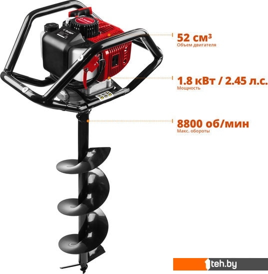 Комплектация | Мотобур - 1штШнек - 1штКлюч свечной - 1штКлюч имбусовый - 2штКлюч гаечный - 1штОтвертка - 1штВоронка - 1штТопливный фильтр - 1штЕмкость для смешивания - 1штРуководство по эксплуатации - 1шт |