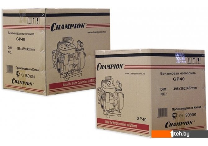 Фотографии, описание и технические характеристики модели Мотопомпы Champion GP40 взяты из открытых источников, официального сайта производителя или представительства Champion в Республике Беларусь.