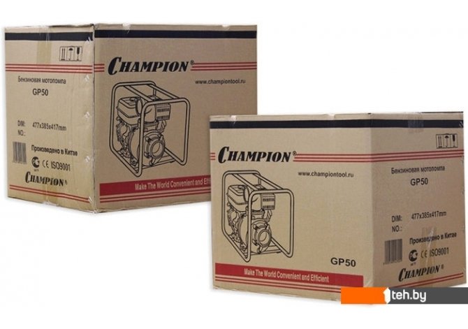 Фотографии, описание и технические характеристики модели Мотопомпы Champion GP50 взяты из открытых источников, официального сайта производителя или представительства Champion в Республике Беларусь.