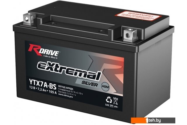 Фотографии, описание и технические характеристики модели аккумулятора для мотоцикла RDrive eXtremal Silver YTX7A-BS (7.2 А·ч) взяты из открытых источников, официального сайта производителя или представительства RDrive в Республике Беларусь.