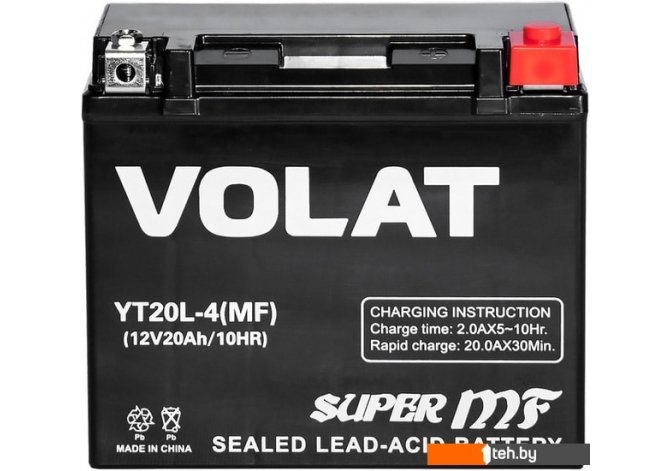 Фотографии, описание и технические характеристики модели аккумулятора для мотоцикла VOLAT YT20L-4 (20 А·ч) взяты из открытых источников, официального сайта производителя или представительства VOLAT в Республике Беларусь.