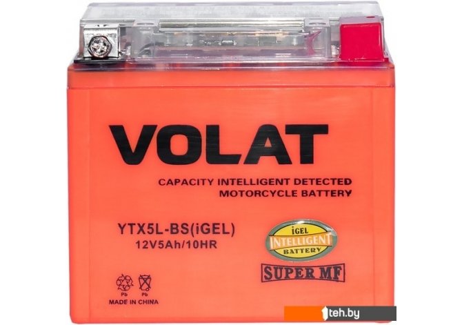 Фотографии, описание и технические характеристики модели аккумулятора для мотоцикла VOLAT YTX5L-BS(iGEL) (5 А·ч) взяты из открытых источников, официального сайта производителя или представительства VOLAT в Республике Беларусь.