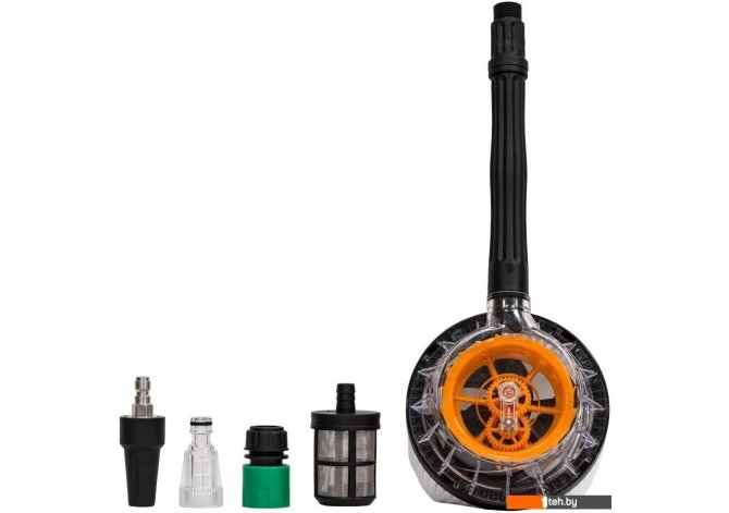 | Информация | • Индукционный двигатель работает без щёток, снижая уровень шума и увеличивая ресурс устройства. • Армированный шланг выдерживает повышенное давление, предотвращая разрывы и перегибы. • 4 сопла в комплекте позволяют адаптировать струю под разные задачи. • Грязевая фреза в комплекте формирует вращающуюся струю для удаления стойких загрязнений. • Встроенный пеногенератор избавляет от необходимости подключать отдельные аксессуары. • Вращающаяся моющая щетка в комплекте ускоряет очистку за счёт одновременного смачивания и механического воздействия. • Забор воды из емкости позволяет использовать мойку вдали от водопровода. • Металлическая телескопическая ручка выдвигается по высоте, облегчая транспортировку. • Катушка для шланга упрощает хранение и защищает шланг от изломов. • Защита от перегрева автоматически отключает двигатель при критической температуре. • Защита от превышения давления сбрасывает избыточное давление, предотвращая поломку системы. • Колеса упрощают транспортировку мойки по участку. |
