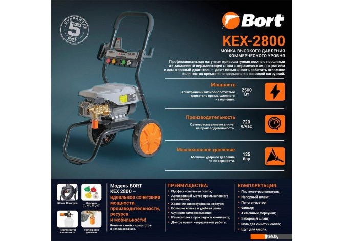 Фотографии, описание и технические характеристики модели аппарата высокого давления Bort KEX-2800 взяты из открытых источников, официального сайта производителя или представительства Bort в Республике Беларусь.