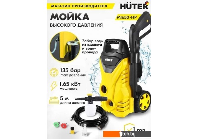 Фотографии, описание и технические характеристики модели аппарата высокого давления Huter M1650-HP взяты из открытых источников, официального сайта производителя или представительства Huter в Республике Беларусь.