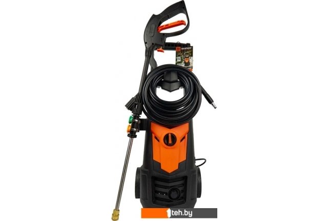 | Комплектация | 1. Корпус мойки высокого давления 2. Ручка для перемещения 3. Держатель моечного пистолета 4. Колёса 5. Пеногенератор 6. Моечный пистолет 7. Насадка-удлинитель для пистолета 8. Шланг высокого давления для воды 9. Комплект моечных фрез (4 шт) 10. Быстросъёмные коннекторы для шланга |