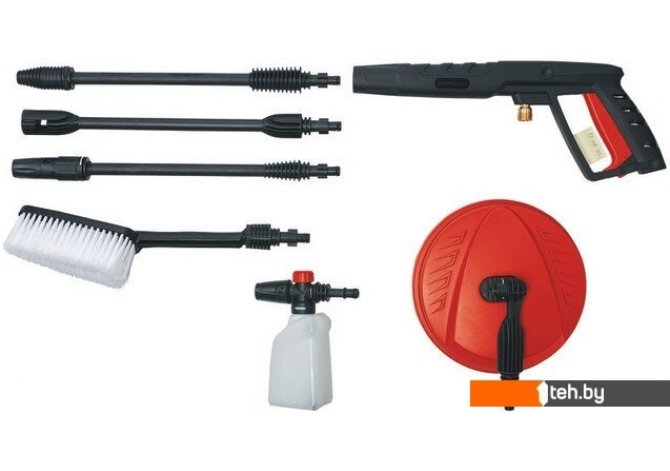 | Комплектация | - пистолет, - шланг 5 метров, - трубка, - турботрубка, - щетка, - пенная насадка, - щетка для мытья плитки, - фильтр для воды. |
