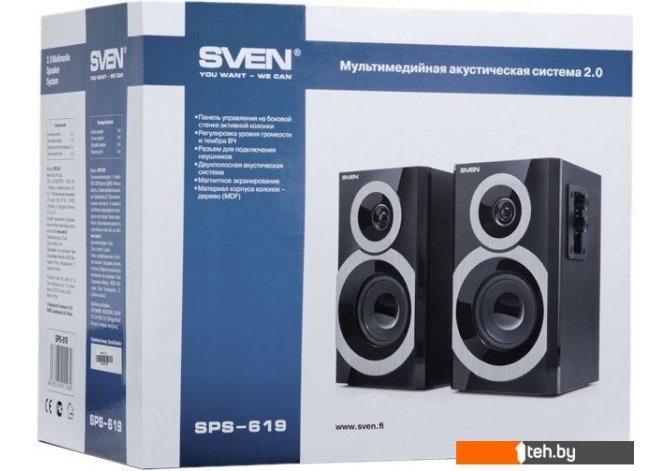Фотографии, описание и технические характеристики модели мультимедийной акустики SVEN SPS-619 взяты из открытых источников, официального сайта производителя или представительства SVEN в Республике Беларусь.