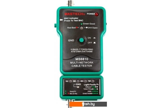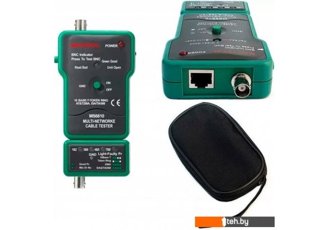 | Информация | Кабельный тестер Mastech MS6810 предназначен для многофункционального использования при проверке сетевых кабельных линий из коаксиального кабеля (BNC), экранированного кабеля на витых парах (DTP) и неэкранированного кабеля на витых парах (STP). Прибор позволяет автоматически определять обрыв, короткое замыкание, перестановки пар или реверсированные пары. Все испытания может проводить один человек с помощью дистанционного пульта, находящегося в корпусе прибора. Использование Кабельного тестера Mastech MS6810 в действующих сетях недопустимо и может вывести прибор из строя. Питание прибора осуществляется с помощью батарей питания 9 В типа "Крона" (по одной в приёмник и в передатчик). |