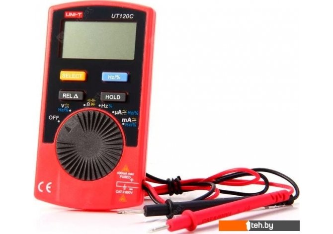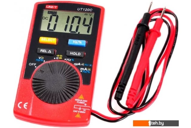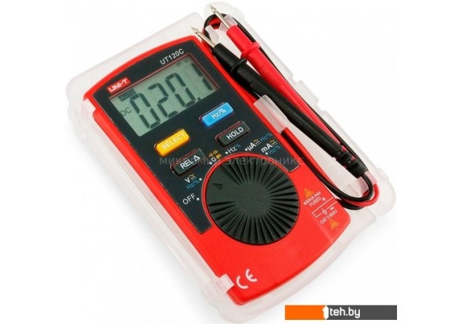| Информация | Цифровой мультиметр UT120C – ультратонкий, компактный и надёжный измерительный прибор с высокой точностью измерений. Данное устройство может похвастаться следующими измерениями: постоянного и переменного напряжения, постоянного и переменного тока, ёмкости и частоты. Так же UT120C оснащён функцией диодного теста, проверки целостности цепи и измерение скважности.Мультиметр UT120C оснащён рядом дополнительных функций:Функция удержания показаний. Для того, чтобы зафиксировать результаты измерения на какое-то время, можно воспользоваться кнопкой "HOLD". Автоматический выбор диапазонов. UT120C оснащен автоматическим выбором диапазонов измерений, для проведения измерений необходимо просто выставить переключатель в положение, соответствующее определенной величине, а диапазон устройство определит самостоятельно.Автоматическое отключение питания. При длительном бездействии устройства оно самостоятельно отключается, что позволит экономить заряд батарей.Индикация обратной полярности.Индикация перегрузки: OL. |