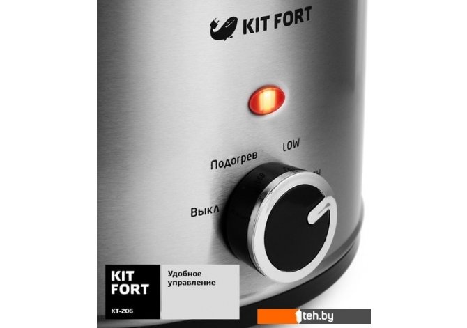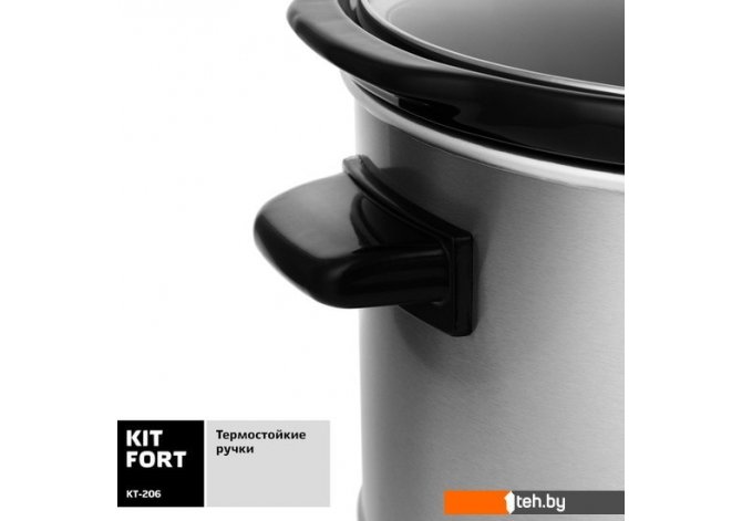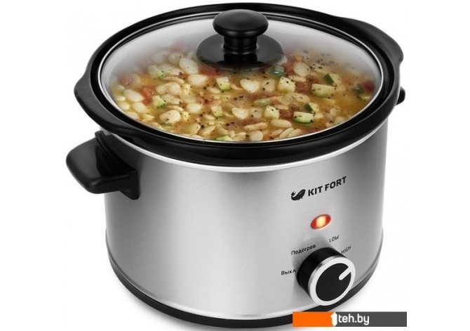 | Информация | Медленноварка Kitfort KT-206 — это простой в пользовании кухонный прибор с большим диапазоном применения. Она состоит из двойного корпуса, внутри которого по периметру расположены нагреватели, и керамической кастрюли с крышкой. Температура приготовления лежит в диапазоне 60–120 °С в зависимости от режима и особенностей готовящегося блюда. Благодаря такому температурному диапазону вода почти не испаряется, а продукты медленно тушатся в собственном соку, сохраняя практически все витамины и полезные микроэлементы. |