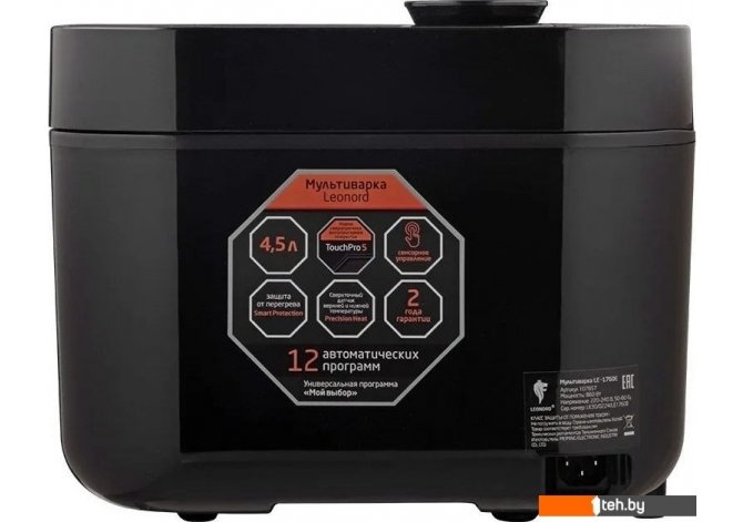 Фотографии, описание и технические характеристики модели мультиварки Leonord LE-1760E взяты из открытых источников, официального сайта производителя или представительства Leonord в Республике Беларусь.