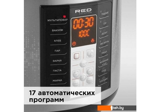 | Информация | Мультиварка RED solution RMC-M40S — умное устройство с управлением через приложение «SKY. Умный дом и сервисы». С увеличенным объемом чаши в 5 литров можно готовить большие объемы блюд для семьи или большой компании. Прибор оснащен 17 автоматическими программами и рядом дополнительных функций, в том числе фритюром, что делает RED solution RMC-M40S универсальным помощником на кухне. Мультиварка поставляется в комплекте с уникальной книгой рецептов от бренд-шефа RED solution. |