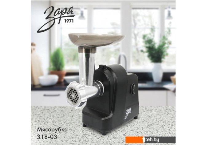 Фотографии, описание и технические характеристики модели мясорубки Заря 318-03 взяты из открытых источников, официального сайта производителя или представительства Заря в Республике Беларусь.