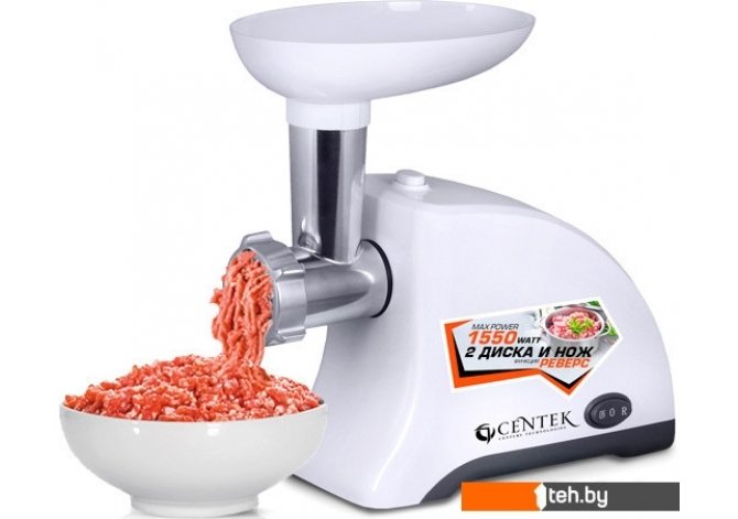 Фотографии, описание и технические характеристики модели мясорубки CENTEK CT-1609 (белый) взяты из открытых источников, официального сайта производителя или представительства CENTEK в Республике Беларусь.