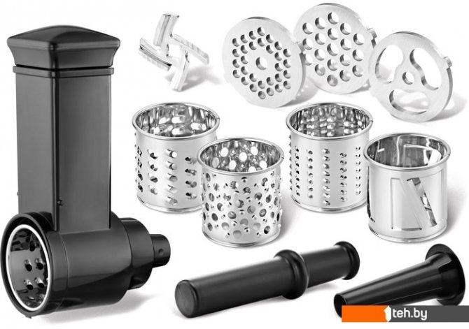 | Информация | Аксессуары для мясорубки "насадка для домашней колбасы и 3 формовочных диска:диск для средней рубки,диск для крупной рубки,диск для рубленого мяса"Аксессуары для овощерезки "4 насадки:терка мелкая,терка крупная,терка для драников,терка для шинкования |