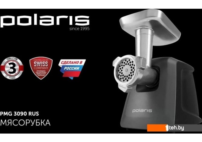 Фотографии, описание и технические характеристики модели мясорубки Polaris PMG 3090 взяты из открытых источников, официального сайта производителя или представительства Polaris в Республике Беларусь.