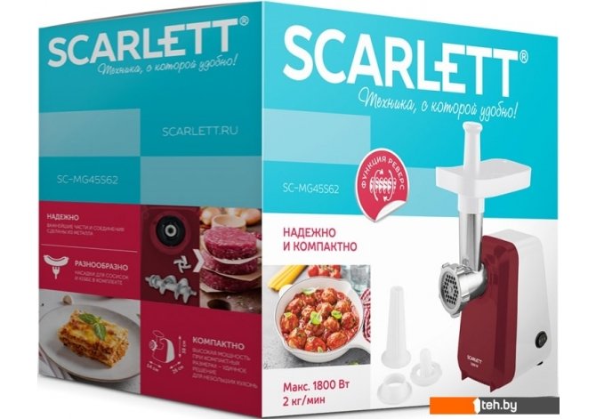 Фотографии, описание и технические характеристики модели мясорубки Scarlett SC-MG45S62 взяты из открытых источников, официального сайта производителя или представительства Scarlett в Республике Беларусь.