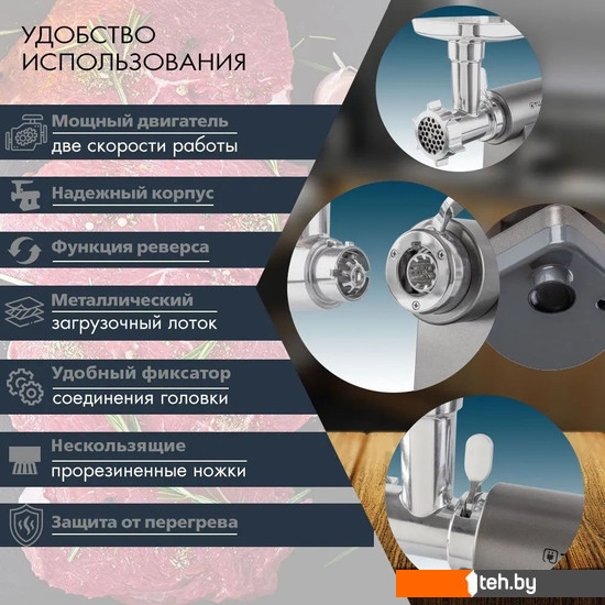 Фотографии, описание и технические характеристики модели мясорубки Tuarex TK-2209 взяты из открытых источников, официального сайта производителя или представительства Tuarex в Республике Беларусь.