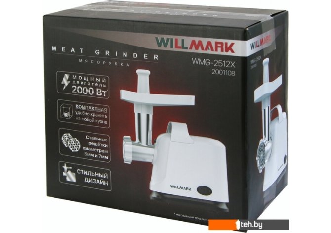 Фотографии, описание и технические характеристики модели мясорубки Willmark WMG-2512X взяты из открытых источников, официального сайта производителя или представительства Willmark в Республике Беларусь.
