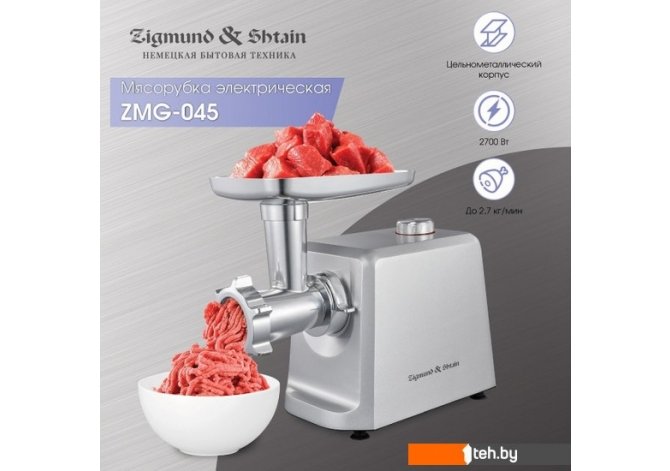 Фотографии, описание и технические характеристики модели мясорубки Zigmund & Shtain ZMG-045 взяты из открытых источников, официального сайта производителя или представительства Zigmund & Shtain в Республике Беларусь.